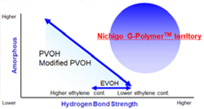 Nichigo G-Polymer™ is a new vinyl alcohol resin that is unparalleled throughout the world (butandiol vinyl alcohol co-polymer resin [BVOH]). The resin can be used to freely control crystallinity and the cohesive power of the non-crystalline part. It is being increasingly used in various applications as an environmentally friendly water soluble resin that achieves high gas barrier performance, formability, and biodegradability in addition to outstanding transparency and solvent resistance.