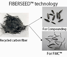 FIBERSEED™ technology enables us to form fleece-like recycled carbon fibers into bundles aligned in one direction. We are applying this technology not only to compounding applications but to FMC using recycled carbon fibers.