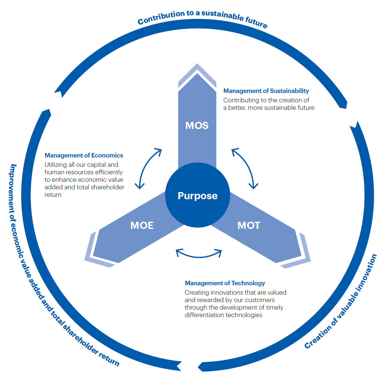 Under its new Group Concept, the Mitsubishi Chemical Group will step up its use of the Management of Economics (MOE), Management of Technology (MOT), and Management of Sustainability (MOS) Indices as its three axes of management in order to realize KAITEKI, which has been the North Star that has guided the Group since 2011.