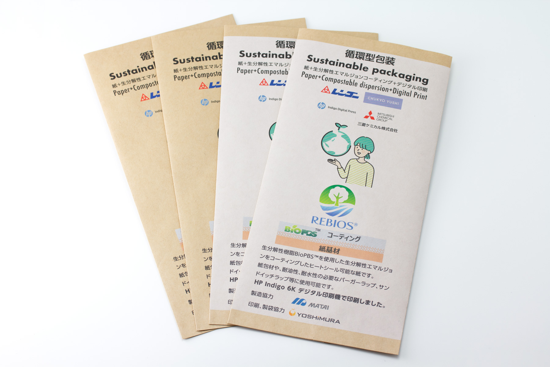 The Mitsubishi Chemical Group (the MCG Group) hereby announces that it has developed a biodegradable /compostable dispersion solution using its plant-derived biodegradable/compostable polymer BioPBS™ in collaboration with Chukyo Yushi Co., Ltd. (Chukyo Yushi). The dispersion will be rolled out as a new grade for packaging materials of Chukyo Yushi's biodegradable/compostable dispersion RESEM bio. In addition, Rengo Co., Ltd. (Rengo) and Nihon Matai Co., Ltd. (Nihon Matai), a member of the Rengo Group, plan to market a packaging material using the dispersion as part of a lineup for the biodegradable/compostable packaging material brand REBIOS®.