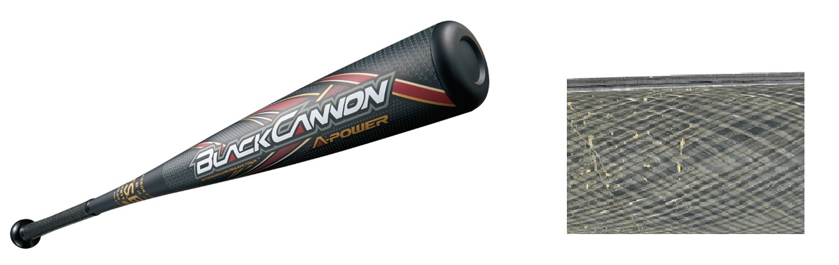 The new grade* adopted for Black Cannon A-Power can be strongly adhered to carbon fiber reinforced polymers (CFRPs) without an adhesive, and is used in film form in the outermost layer of the striking part of the bat. Tefabloc™ further improves hitting speed by enhancing impact resistance and maximizing the strength and lightness of CFRPs.