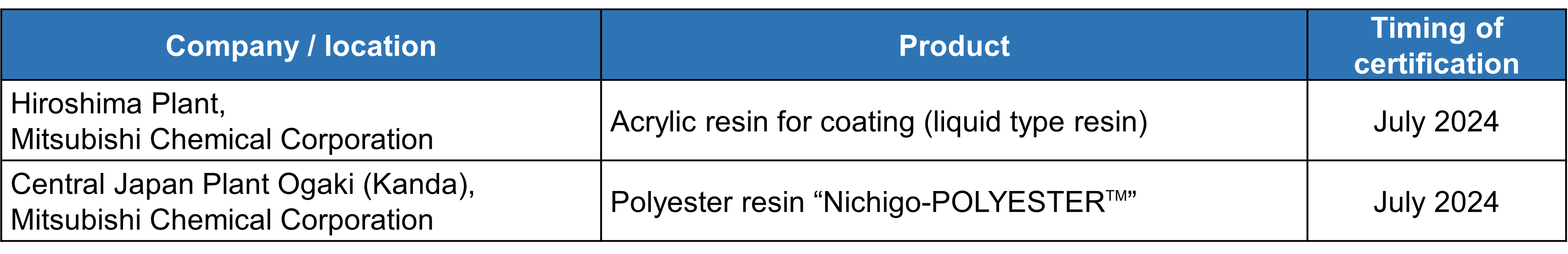 The Mitsubishi Chemical Group (the MCG Group) has acquired ISCC PLUS certification, an international certification system for sustainable products, for the products shown below. This certification guarantees that recycled raw materials and biomass raw materials are properly managed in the supply chain, including product manufacturing. With this certification, we will be able to handle the following products that utilize the mass balance method*1.