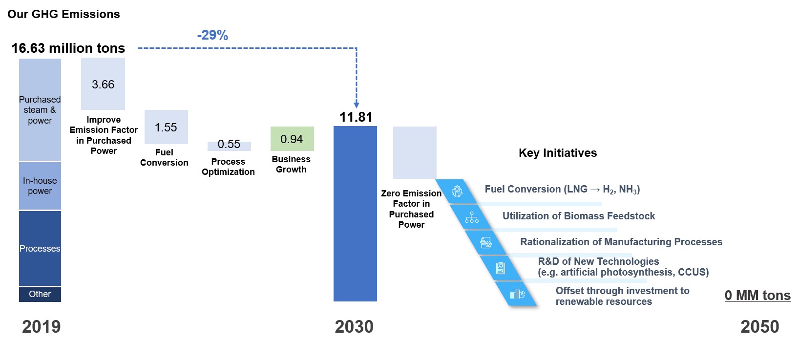 For FY2022, our GHG emissions totaled 14.37 million tons, down roughly 14% relative to FY2019. This reduction is partly due to the progress of our business structure reforms and the lowering of our equipment utilization rate as well as because we have been steadily implementing reduction measures such as those for fuel conversion and process optimization.