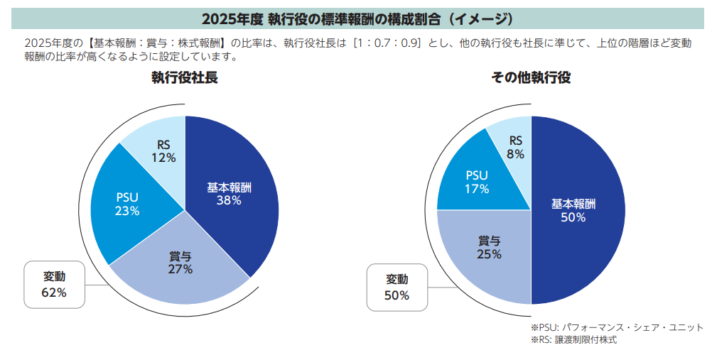 - 当社グループの持続的な成長を牽引する優秀な経営人材の保持・獲得につながる競争力のある報酬水準とする。