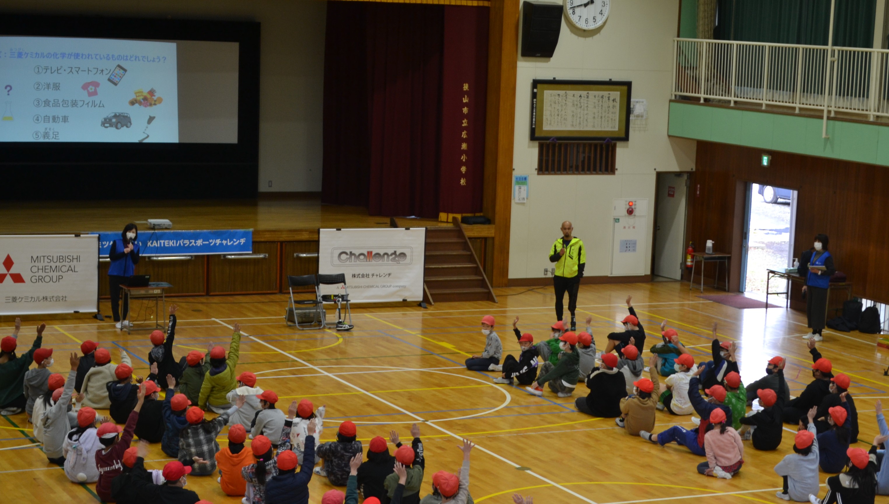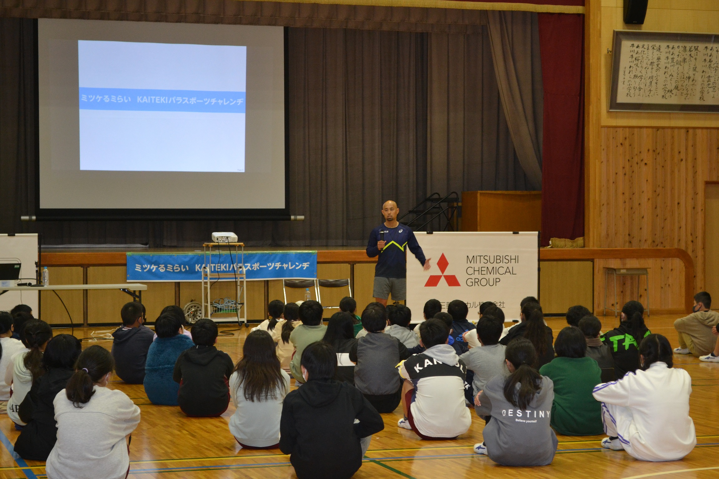 三菱ケミカルグループ(以下、当社グループ)は、競技用義足の体験型授業「ミツケるミらい KAITEKIパラスポーツチャレンヂ」を開催しました。
