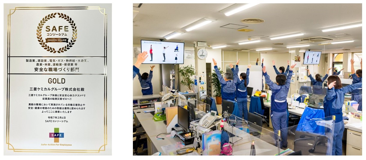 三菱ケミカルグループは、厚生労働省が主催する2024年度第3回「SAFEアワード」において、転倒災害ゼロをめざす「三菱ケミカルグループ体操」と「安全安心体力テスト」の取り組みが、安全な職場づくり部門で最高ランクの「ゴールド賞」を受賞したことをお知らせします。今回、初めての応募での受賞となりました。