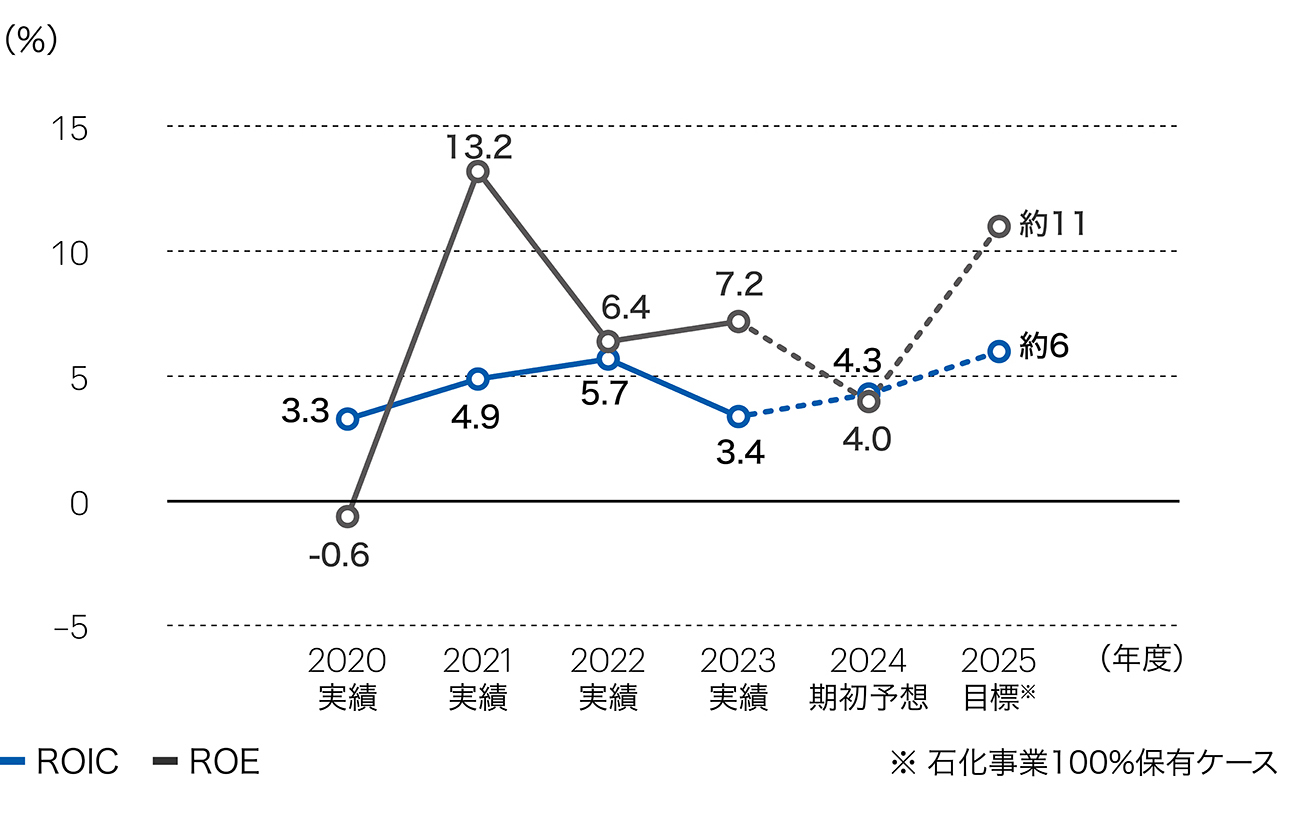 改善活動を行うための社内管理指標には、応用しやすいROICを用い、当面はROE10%に相当する7〜8%をめざします。これは想定資本コストを超える水準です。2024年度のROICは4.3%程度を予想しています。事業別に見ると、産業ガスとファーマが牽引する一方で、スペシャリティマテリアルズ、MMA&デリバティブズ、ベーシックマテリアルズ&ポリマーズの資本効率が全体を押し下げる状況です。今後は事業ポートフォリオの一層の見直しを進めてグループ全体で資本効率の底上げを図り、特にスペシャリティマテリアルズについては中期的には産業ガスに匹敵、もしくは超える水準のROICをめざしていきます。