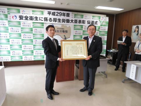 当社郡山製造所が「安全衛生に係る厚生労働大臣表彰 奨励賞」を受賞