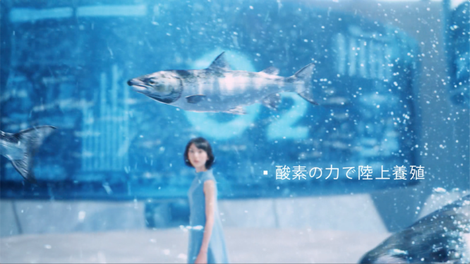 そして今回の第三弾は、「未来の水・食料」をテーマにストーリーが展開します。CMは、池間さんが、水や食料の未来を思い、目の前に浮かぶ地球に問いかけるところから始まります。そして、地球をノックすると未来の世界にタイムスリップ。そこには、陸上養殖や植物工場など、持続可能な食品供給に貢献するシステムが登場し、水資源が循環するスマートシティが広がっています。現在直面している社会課題が解決された未来を見ることで、池間さんは、これからの未来づくりに期待を膨らませるというストーリーになっています。
