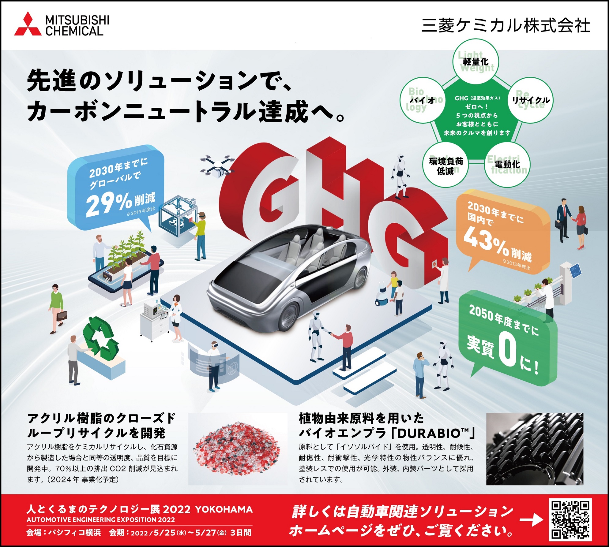 三菱ケミカルホールディングスグループ(以下、当社グループ)は、人とくるまのテクノロジー展2022 YOKOHAMAに出展いたします。