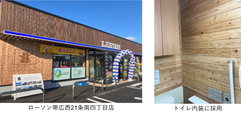 株式会社ローソン(本社:東京都品川区)は、北海道産の木材を内外装に使用したHOKKAIDO WOOD BUILDING※1登録店舗を北海道内に13店舗展開しています。今回オープンした「ローソン帯広西21条南四丁目店」では、トイレ内装のカラマツ羽目板にBENEBiOL™を原料とする塗料が採用されました。これはBENEBiOL™として初めての建材塗料への採用であり、木材に柔らかであたたかみのある質感を与えます。