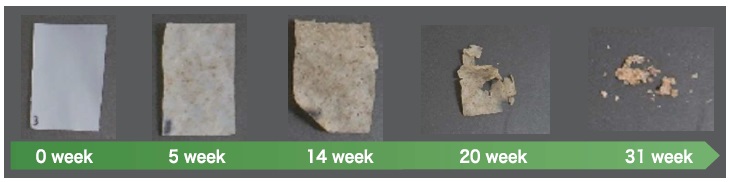 条件:グレード「SA916N」厚さ50㎛のフィルムを60℃のコンポストと土壌に設置
