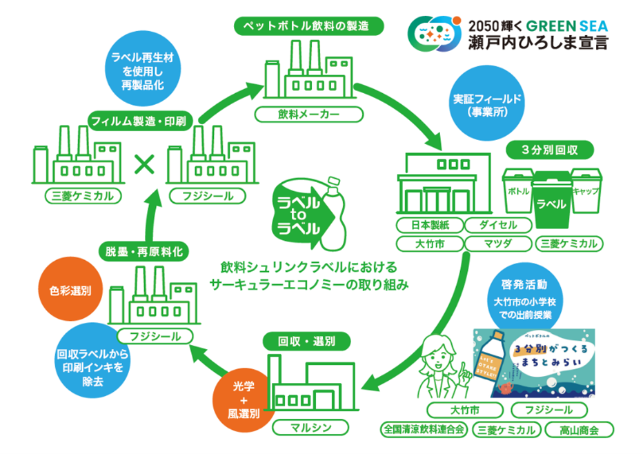三菱ケミカルグループ(以下「当社グループ」)は、広島県が公募した「令和6年度 海洋プラスチック対策(プラスチック使用量削減等)・リーディングプロジェクト支援事業」に対して、「飲料ラベルの水平リサイクル実現に向けた資源循環モデルの構築」(以下「本事業」)を提案し、3年連続※1で採択されました。
